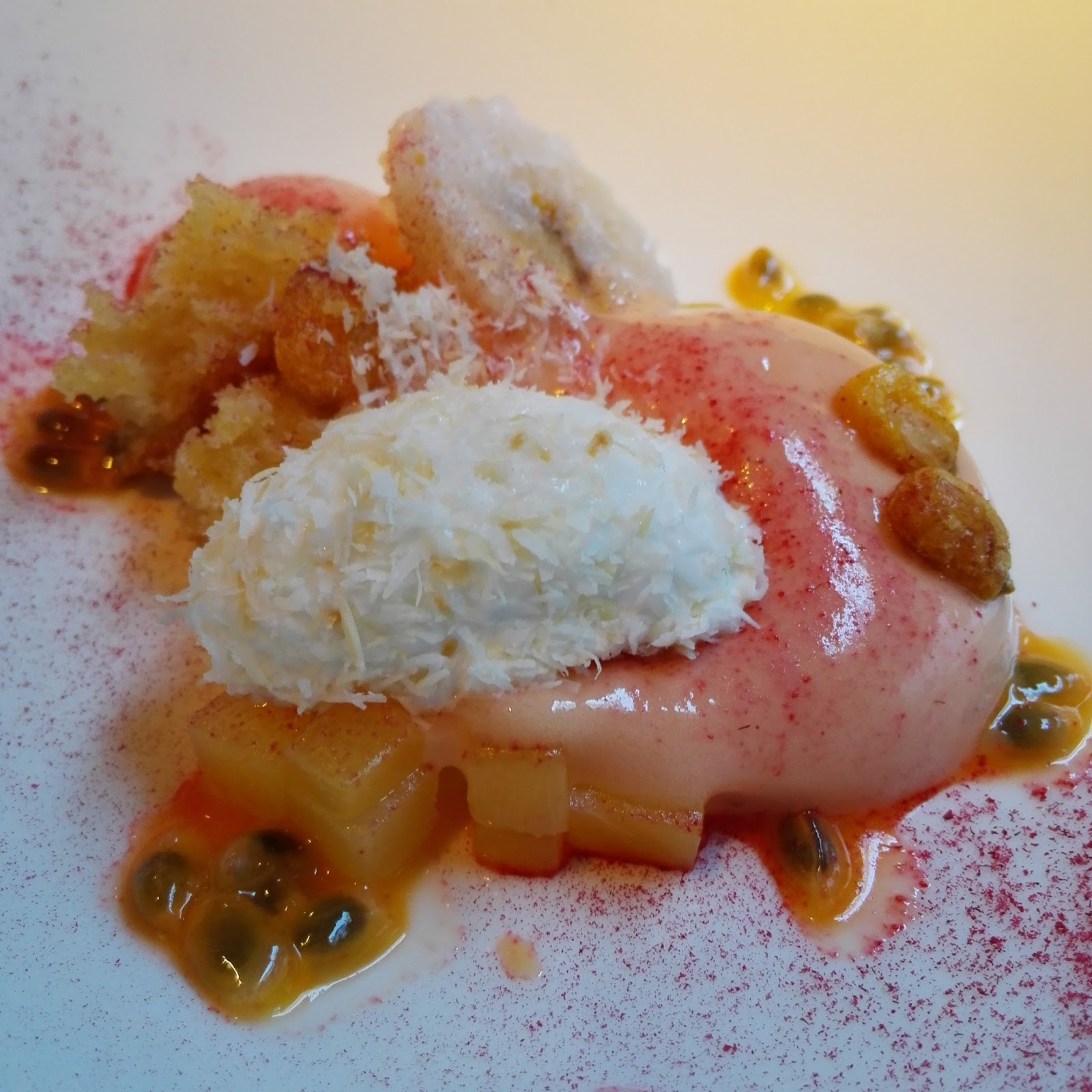 con naranja y flor de calabacín (Shanghái) y el chocolate con pistachos